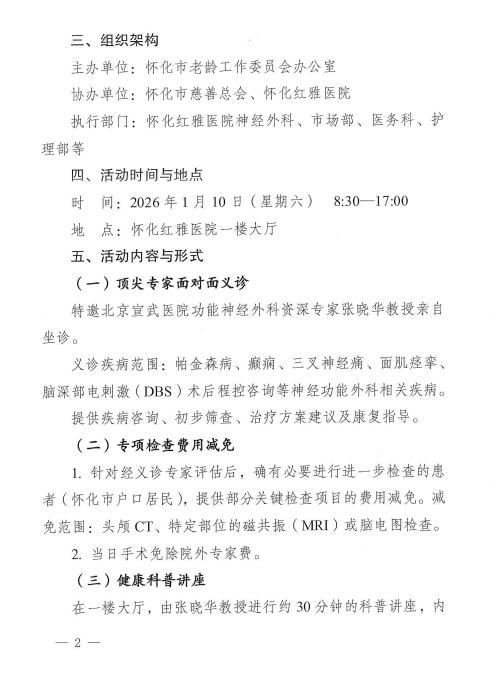 关于联合怀化红雅医院开展公益义诊活动方案