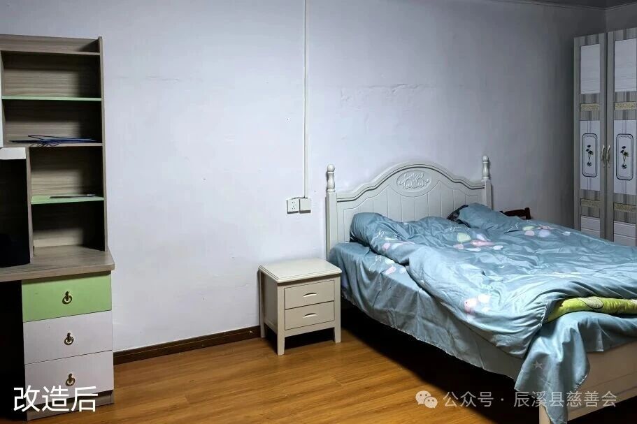 改造过程中,精准对接每个孩子的实际需求,结合房屋实际情况制定个性化改造方案,聚焦居住安全与学习实用,从墙面翻新、门窗更换,到书桌、衣柜、床品等生活学习物资的添置,每一处细节都力求贴合孩子成长需求,全力打造整洁、安全、温馨的“幸福小屋”。如今,昔日简陋的房间焕然一新,明亮的学习角、舒适的休息区,让孩子们拥有了专属的成长空间。