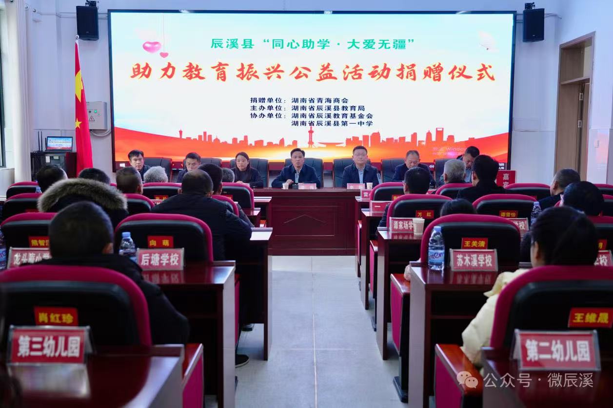 捐赠方代表、湖南省青海商会党支部书记、秘书长李新在发言中表示,教育是国之大计、党之大计,商会秉持“情系公益、反哺社会”理念,此次捐赠物资涵盖教学设备、科普资源、学习用品等,精准对接辰溪义务教育薄弱环节改善需求,愿为山区学子享有优质教育资源助力。