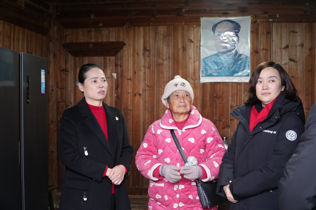 随后,一行人开展入户走访,走进困难老人杨世凤家中。今年75岁的杨奶奶,丈夫因支气管炎、肺气肿等疾病常年服药控制病情,曾多次住院治疗,近期病情加重卧病在床,日常生活起居全由杨奶奶独自照料,家庭生活十分困难。慰问中,李贞妮、陈毳萍向老人表达了真挚的关怀与问候,这份暖心的善意让杨奶奶感动落泪。