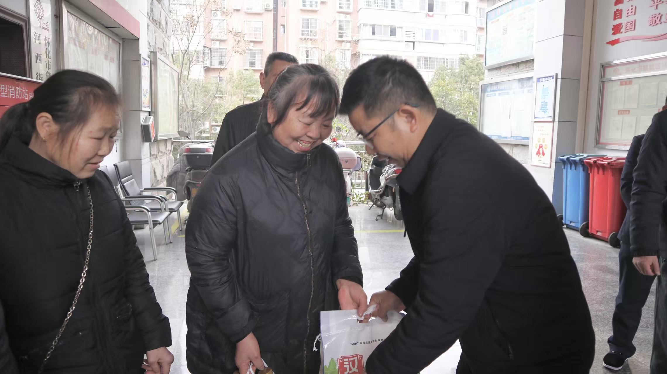 2月6日下午,怀化市慈善总会携手交通银行怀化河西支行走进德善社区,开展“迎新春送温暖”爱心慰问活动,为社区困难家庭送上米、油等爱心物资。怀化市民政局党组书记、局长、市慈善总会常务副会长曾庆于,鹤城区副区长、河西街道党工委书记张康,市慈救中心主任、市慈善总会办公室负责人李贞妮,长沙住房公积金管理中心铁路分中心怀化管理部主任易勇,交通银行怀化分行党委委员、副行长杨桦等相关人员参加。
