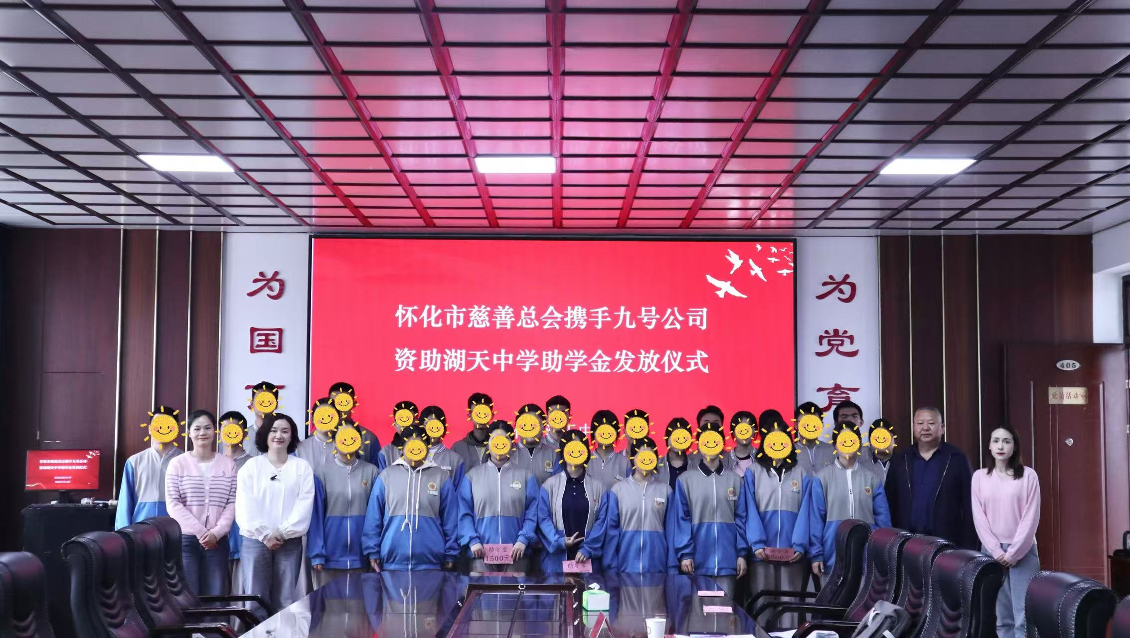 4月14日,怀化市慈善总会携手九号公司在怀化市湖天中学举行助学金发放仪式,为27名品学兼优的困境学子送上帮扶与温暖关怀。市慈救中心主任、市慈善总会办公室负责人李贞妮,市慈救中心副主任彭倩倩,湖天中学副校长杨谋,湖天中学团委副书记邱萍及27名受助学子共同参加。